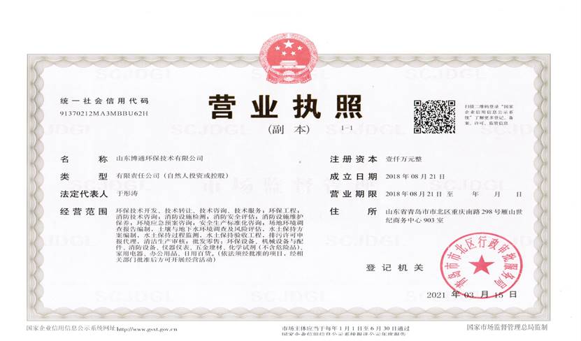 山東博通環(huán)保技術(shù)有限公司是一家專業(yè)從事環(huán)保、安全、消防的多元化技術(shù)服務公司,公司致力于打造專業(yè)的技術(shù)服務團隊,立足青島,輻射山東,服務范圍涵蓋:環(huán)保技術(shù)開發(fā)、技術(shù)轉(zhuǎn)讓、技術(shù)咨詢、技術(shù)服務;環(huán)保工程;消防技術(shù)咨詢;消防設(shè)施檢測;消防安全評估;消防設(shè)施維護保養(yǎng);環(huán)境應急預案咨詢;安全生產(chǎn)標準化咨詢;場地環(huán)境調(diào)查報告編制,土壤與地下水環(huán)境調(diào)查及風險評估,水土保持方案編制,水土保持過程監(jiān)測,水土保持驗收工程,排污許可申報代理,清潔生產(chǎn)審核;...